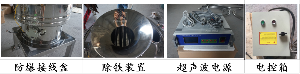 超聲波振動篩的衍生產(chǎn)品,是在DHC系列產(chǎn)品的基礎(chǔ)上在料口出增磁棒除鐵,從而達到除鐵的效果。